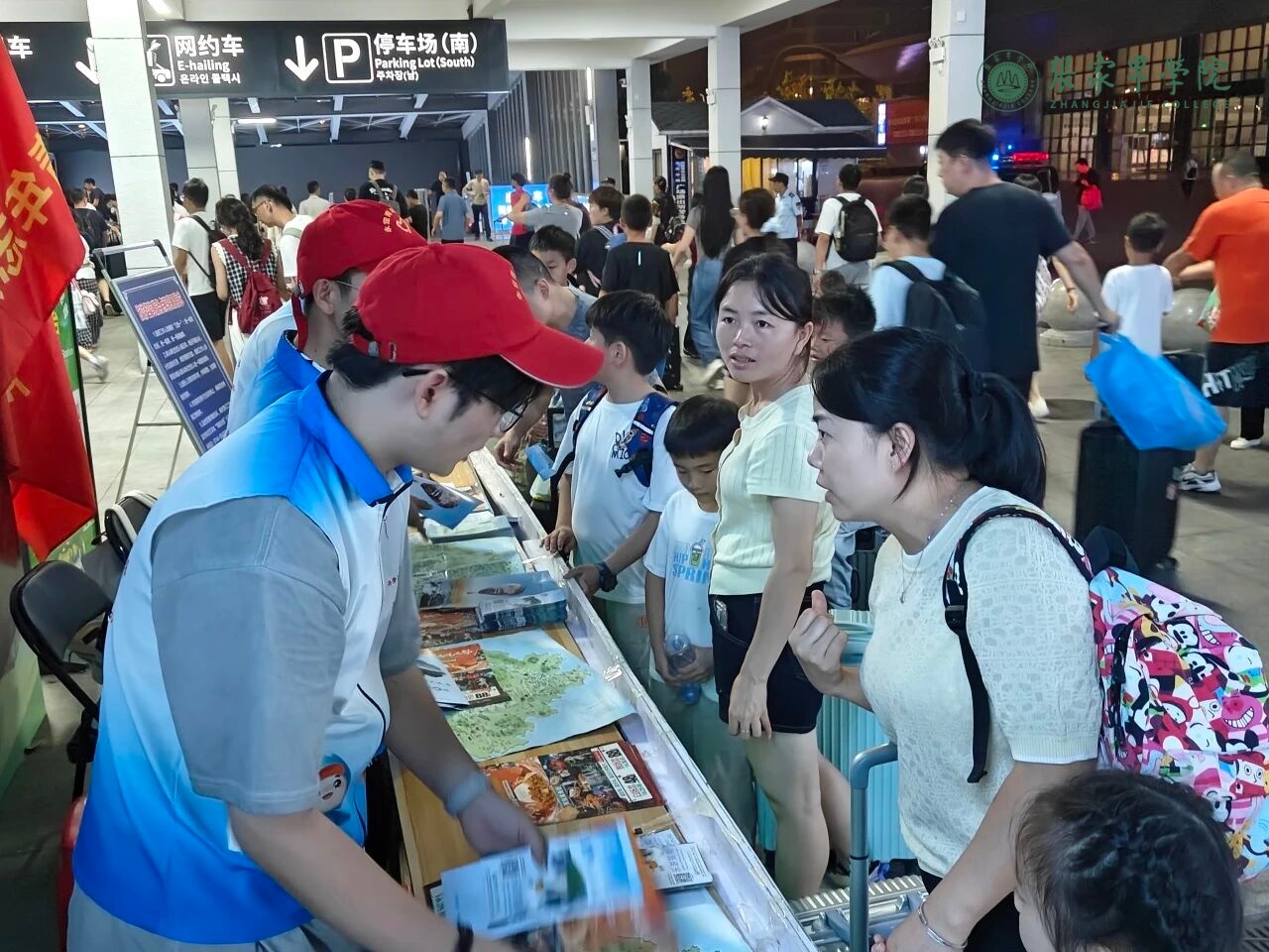 2025-10-1410月1日至10月8日,张家界市永定区大学生武陵志愿服务大队志愿者与我校经济管理学院党支部代表,在永定区团委的统一组织下,于天门山景区、张家界高铁西站、七十二奇楼等9个志愿服务站点,联合开展“平安满意在张家界”国庆中秋志愿服务活动,以实际行动为游客保驾护航。