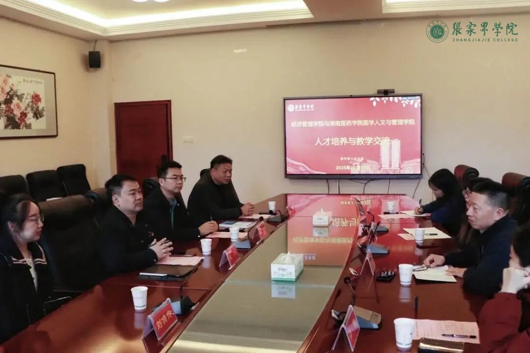 12月2日,湖南医药学院医学人文与管理学院副院长段凤华、物流与管理教研室主任曾祥鹏一行到访张家界学院,并在博学楼大会议室进行教学交流分享。我校经济管理学院党委书记宋扬,副院长宋科等参加会议。会议由宋扬主持。