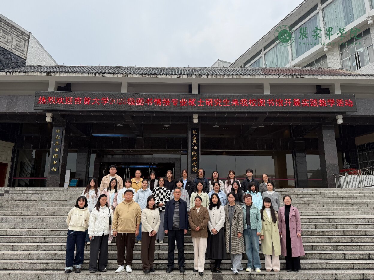 10月27日上午,吉首大学2025级图书情报专业硕士研究生在我校图书馆开展实践教学活动。本次活动由吉首大学研究馆员徐险峰带队,我校图书馆副馆长刘欢、黄晓燕全程参与此次活动。活动围绕图书情报专业培养需求,设计了理论讲授、实地参观与实操训练三个环节。
