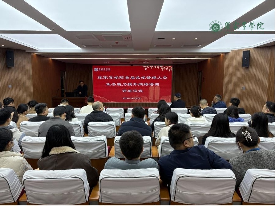 为进一步提升教学管理队伍的业务素养和管理能力,张家界学院教务处于11月10日在望岳楼致远厅举行首届教学管理人员业务能力提升网络培训开班仪式。教务处处长庹清、组织人事处处长黎克双,各二级学院分管教学副院长,教务秘书以及教务处全体职员参会。