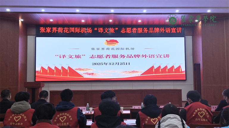 12月25日,张家界荷花国际机场开展“译文旅”志愿服务品牌外语宣讲活动。我校文学院党总支书记贺孝忠带领学生代表参加活动。