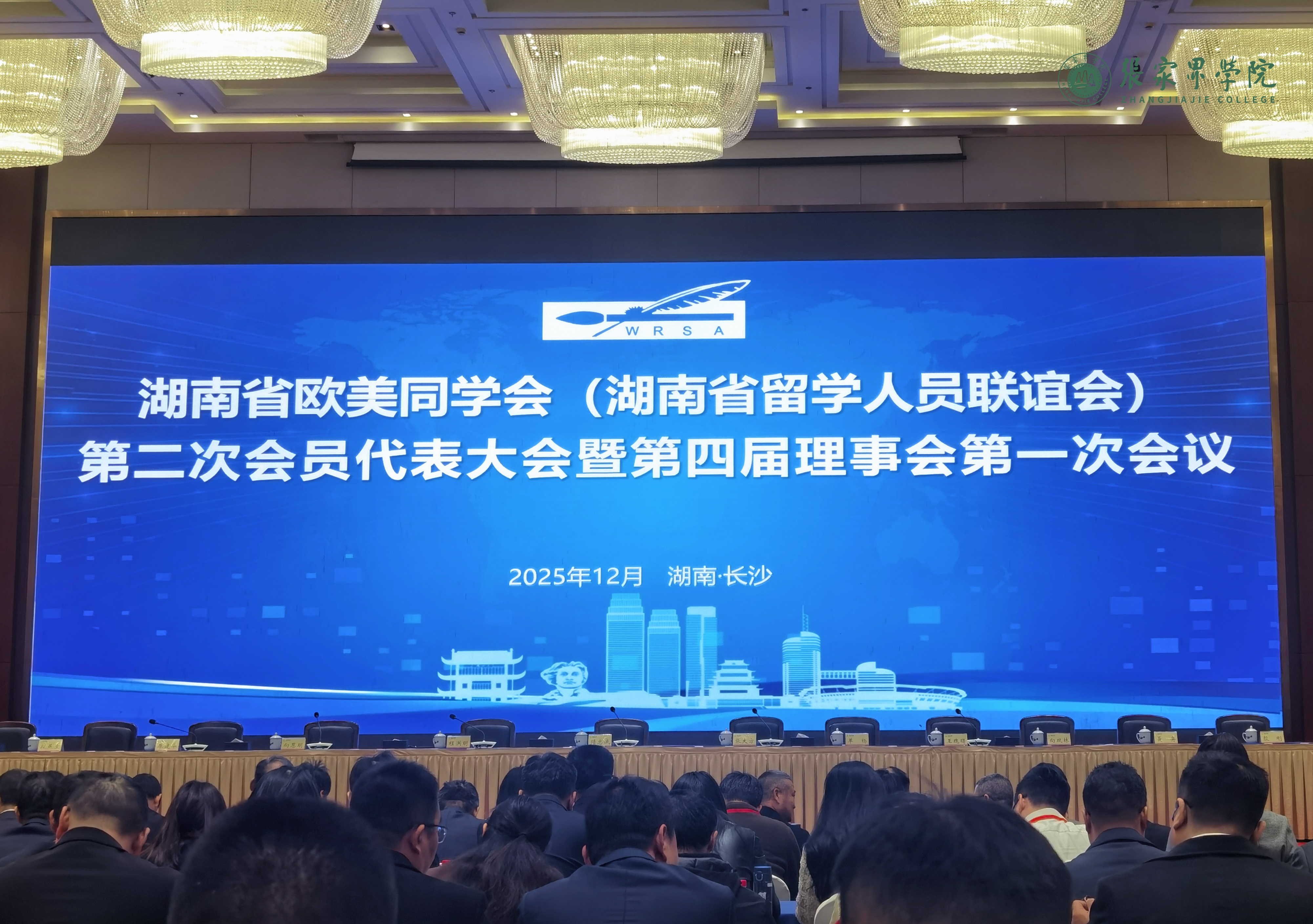 12月27日,湖南省欧美同学会(湖南省留学人员联谊会)第二次会员代表大会暨第四届理事会第一次会议在长沙召开。我校组织人事处吴美慧,宣传统战部蒋宗坤两位老师参会。
