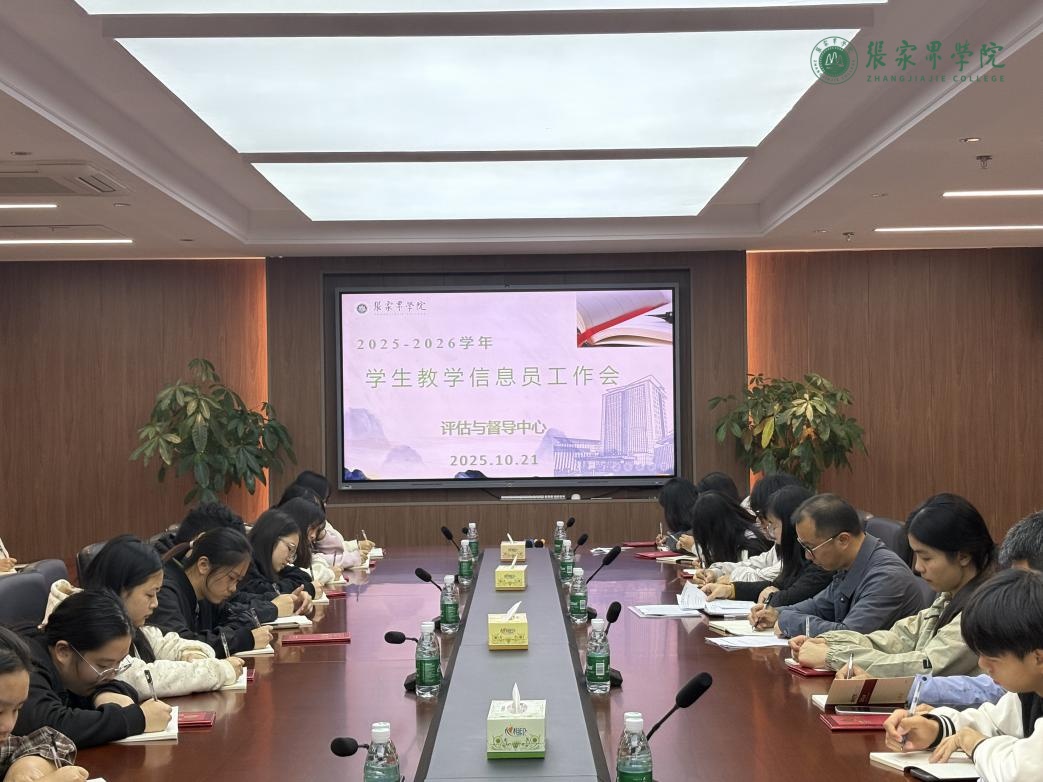 2025-10-1610月21日,张家界学院在望岳楼修远厅召开2025-2026学年学生信息员工作会议。会议围绕本学年教学信息反馈与管理工作展开,评估与督导中心主任陈善敏出席会议,评估与督导中心相关教师、全体学生信息员共同参会。此次会议由评估与督导中心汤友莲主持