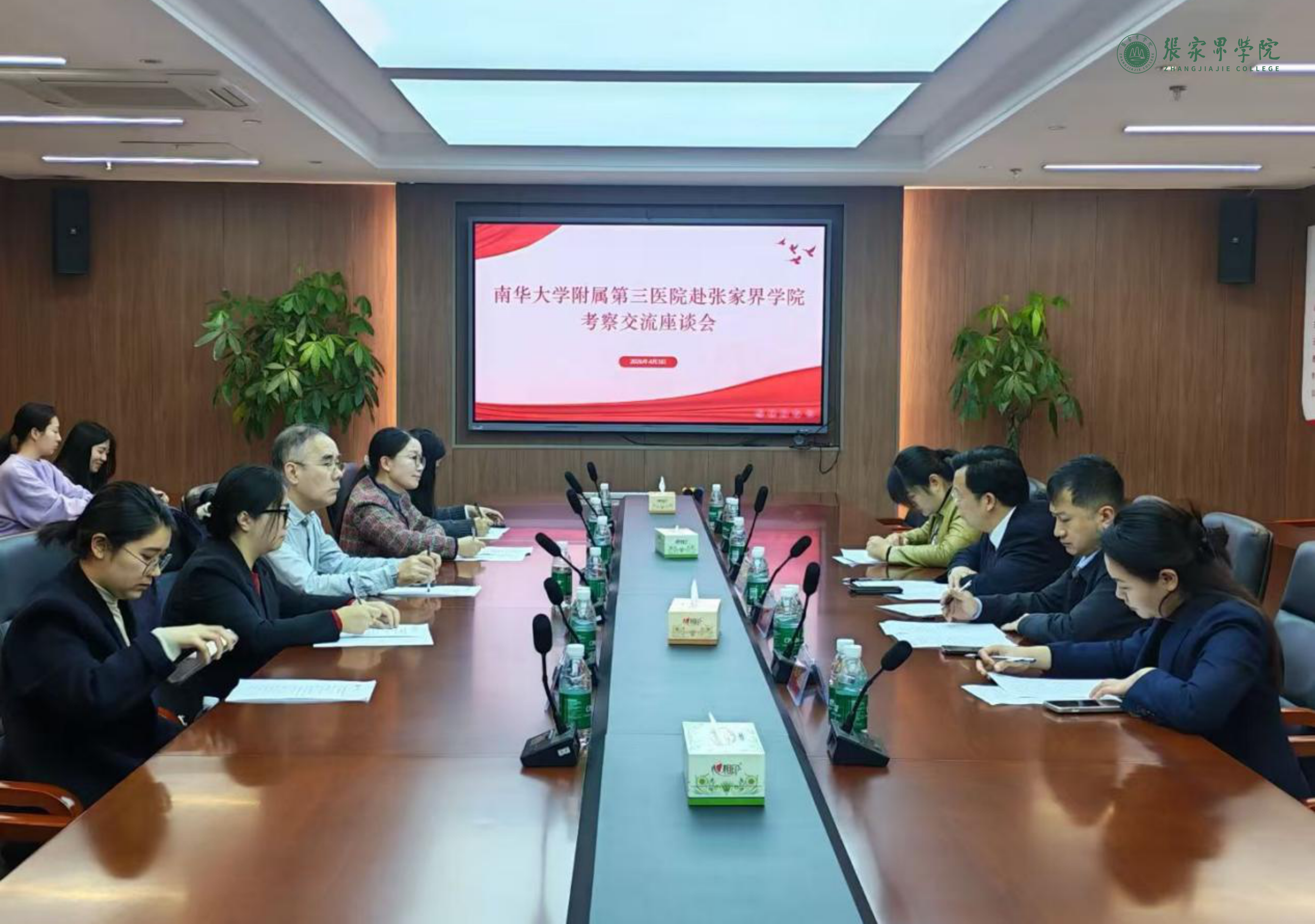 4月3日上午,南华大学附属第三医院党委书记左建宏一行来我校考察交流。座谈会在张家界学院望岳楼修远厅举行,医学与生命科学学院副院长师小英主持会议,医学与生命科学学院院长田英及教师代表等参会。