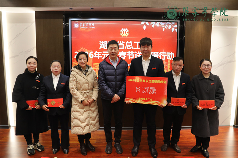 1月10日,湖南省总工会党组成员、经费审查委员会主任马晖,经费审查办公室主任简向前,湖南省教育工会主席邓曼、四级调研员龙培一行来我校,开展2026年元旦春节送温暖走访慰问活动。